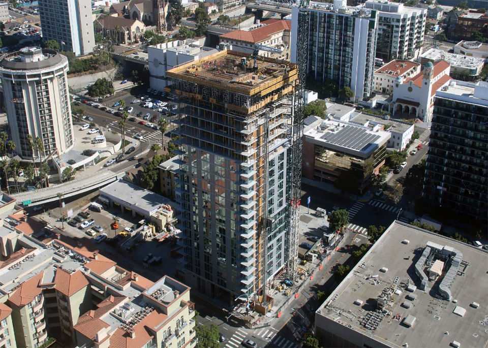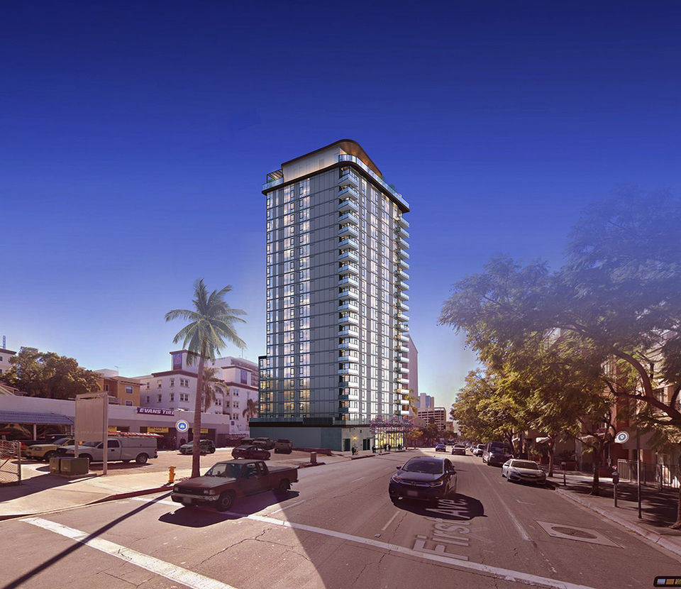 Ancora is a new, 22-story residential tower located in downtown San Diego’s Little Italy neighborhood. At approximately 183,808 SF, the project is comprised of 220 market rate and affordable residential micro-units averaging 556 SF. An expansive roof terrace caps the tower with an interior sky lounge connected to an outdoor pool, spa, fire pit, and kitchen/dining areas. Residential amenities include include a fitness studio, pet spa, bicycle parking. The setting, shape, and height of Ancora's tower is devised to maximize the allowable density. A semi-automated, stacked parking system accommodates 25 parking stalls.